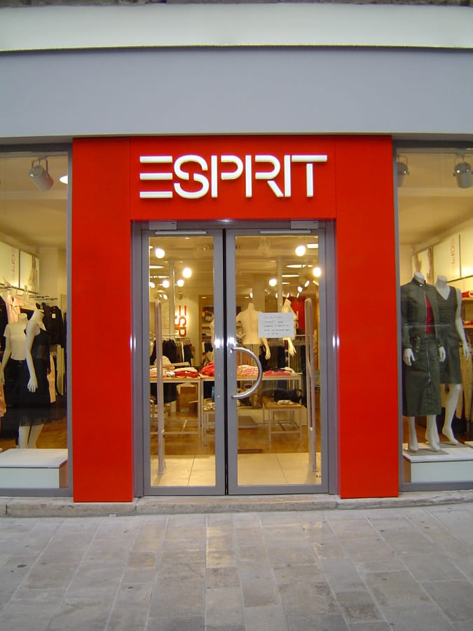 Arche en tôle tablette aluminium laquée rouge avec tôle évidé pour caisson lumineux. Fixation sur ossature légère aluminium.