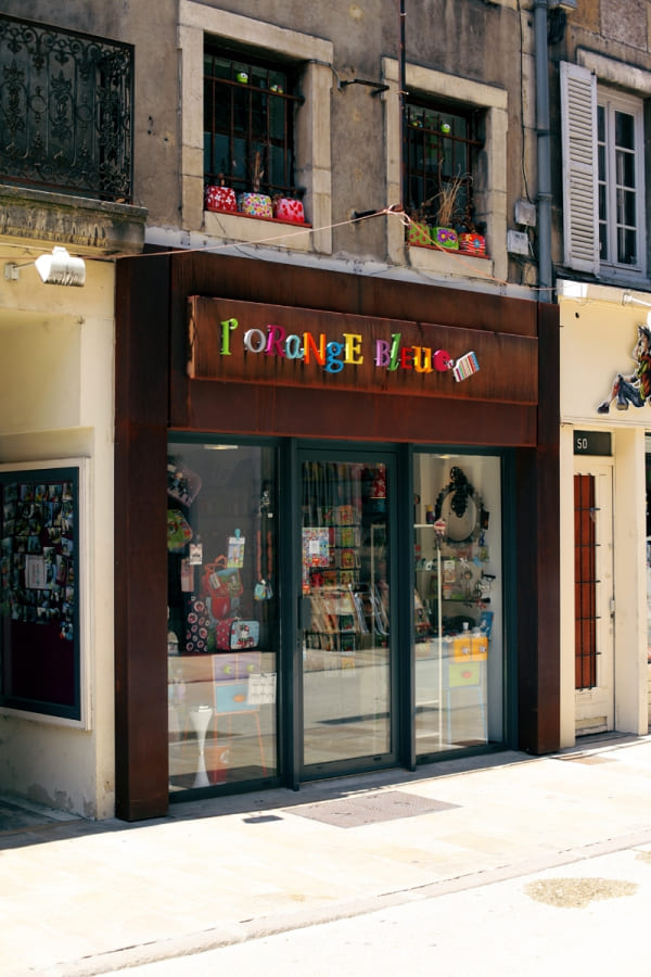 Habillage de façade en acier Corten avec bandeau pour réception de l’enseigne lumineuse.