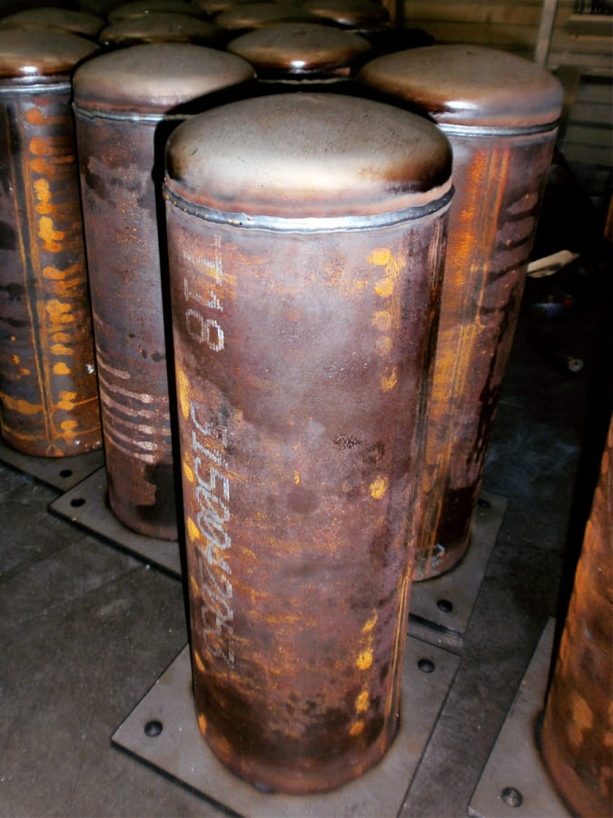 Série de plots en acier brut.